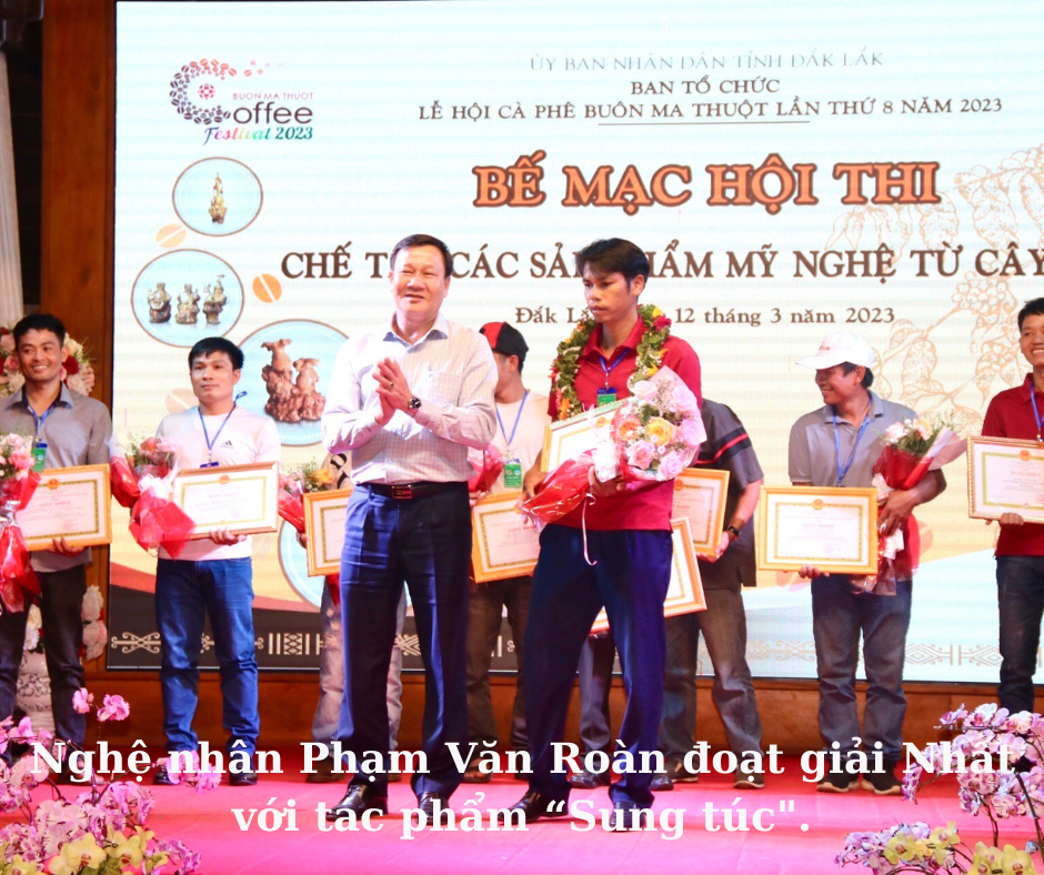 Kết thúc hội thi, Đoàn nghệ nhân tỉnh Đắk Nông đạt giải nhất với tác phẩm Sung túc của nghệ nhân Phạm Văn Roàn, huyện Đắk Rlấp đạt giải Nhất; Giải Nhì thuộc về nghệ nhân Vũ Văn Viễn (tỉnh Đắk Nông) với tác phẩm “Cà phê Việt vươn xa”, đạt 01 giải ba và 01 giải khuyến khích.