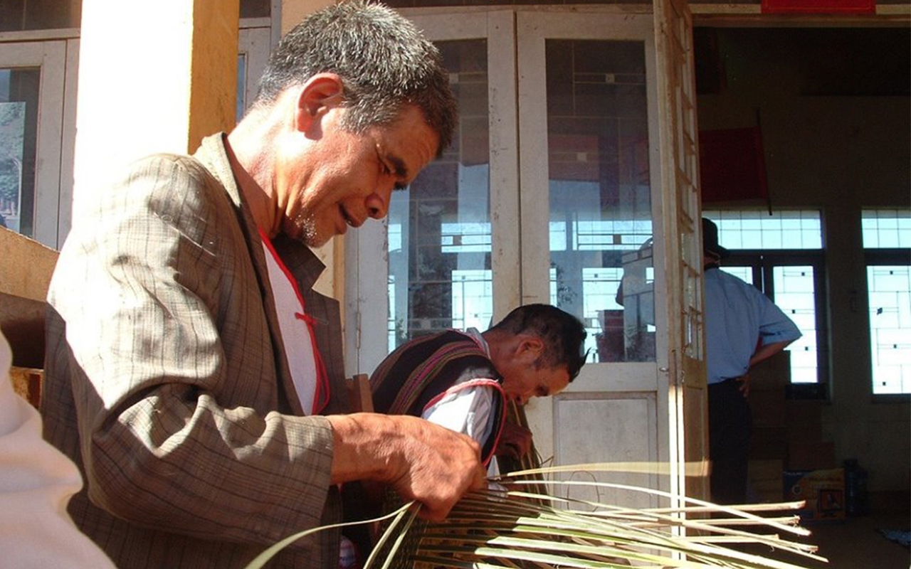 Từ lâu việc đan lát các vật dụng, đồ dùng làm từ mây, tre, nứa đã gắn liền với đời sống của đồng bào dân tộc M’Nông. Với nguồn nguyên vật liệu tự nhiên sẵn có, từ khối óc và đôi bàn tay khéo léo, các nghệ nhân tại Bon Ting Wel Đăng, xã Đắk Ha, huyện Đắk G’Long đã sáng tạo nên nhiều vật dụng phục vụ cho đời sống lao động, sản xuất như gùi, nia, nơm...