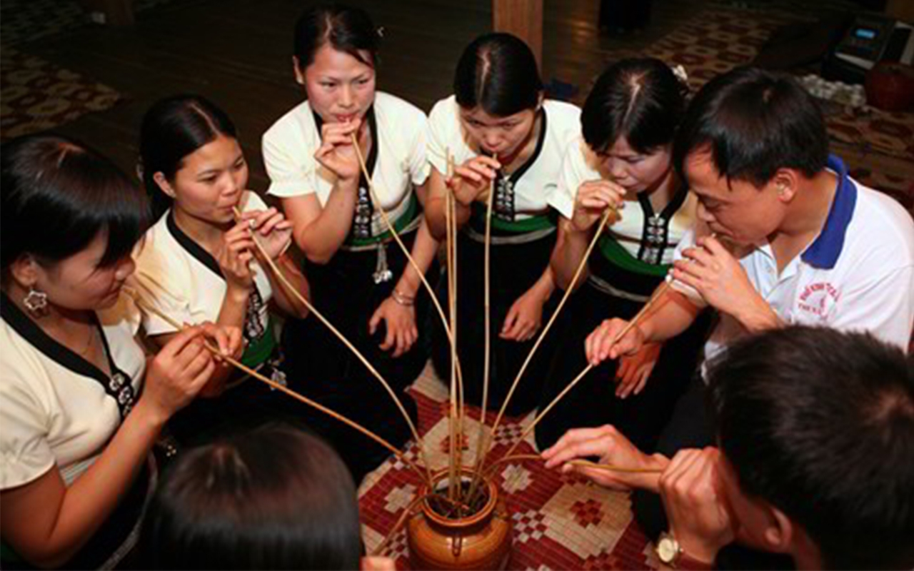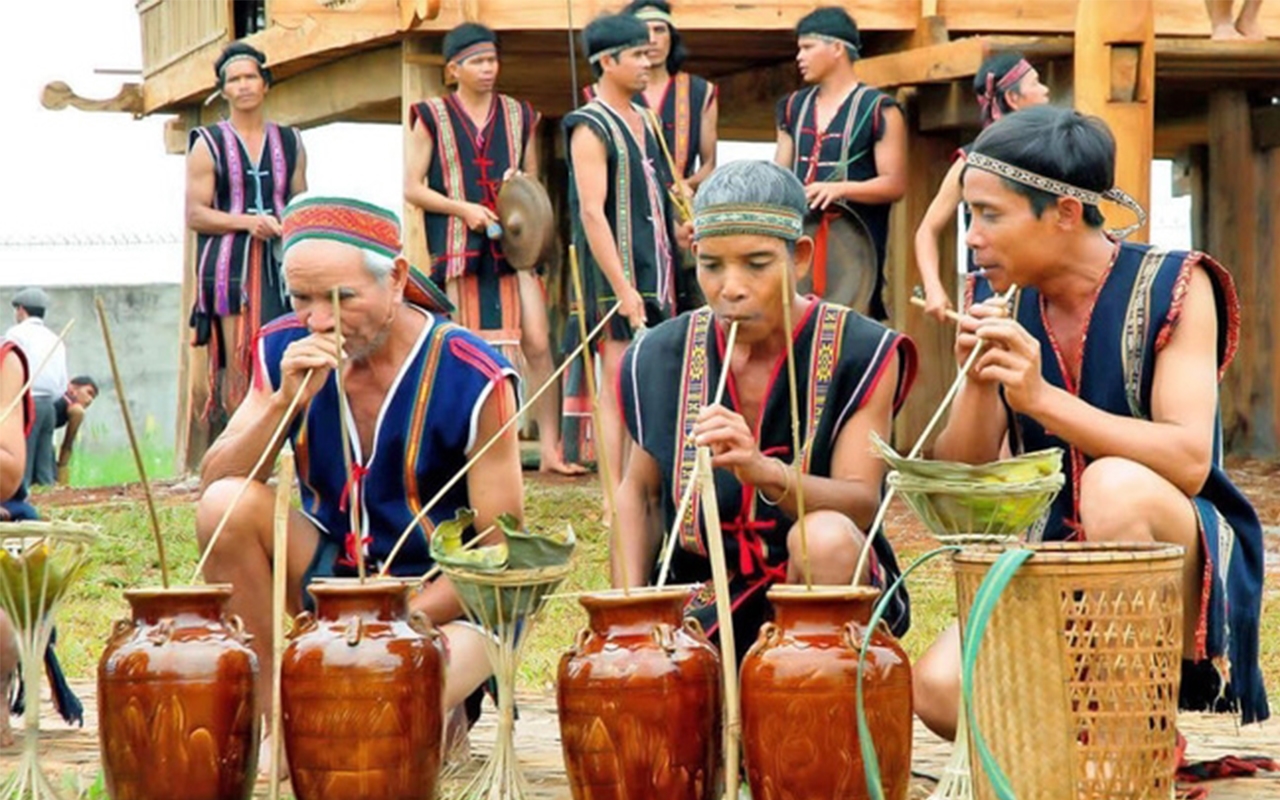 Một trong những loại ẩm thực không thể thiếu trong các cuộc vui, lễ hội của cộng đồng chính là rượu cần. Rượu được ủ trong những chiếc ché không qua chưng cất; nguyên liệu ủ rượu rất bình dị như lúa, trấu cùng với loại men được làm từ lá, vỏ cây rừng. Trong văn hóa của các dân tộc tỉnh Đắk Nông, rượu cần vừa là sản vật, đồng thời cũng là lễ vật của người dân các dân tộc nơi đây dâng cho thần linh, trời đất mỗi dịp lễ hội. Vì vậy, rượu cần không được sử dụng hàng ngày, mà chỉ dùng mỗi khi đón khách quý hay trong các lễ hội, những dịp trọng đại của bon, làng. Khi uống rượu, người ta thường dùng một chiếc cần duy nhất được làm từ cành trúc uốn cong, mọi người từ chủ nhà đến khách, chuyền tay nhau cùng uống, điều này thể hiện tính hiếu khách, chia sẻ, đoàn kết của cộng đồng.